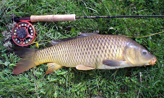 Today was a stay in bed sick day...haha...I'm a bad sick person...I can't stay still regardless of my health or anything else for that matter. I have the cold of all colds...sneezing, snot, cough, body ache and tiredness...you know the drill...I saw the sun shining and couldn't help myself....I mean...really....it's gonna rain again soon...I know it is...off to carp I went...Armed with a small box of proven carp catchers, my trusty 3880 Sage fly reel and a new 9ft 7 wt streamlight from LLBean..it was on sale for 89.00...couldn't pass it up....I strung it up with Cortland Fly Line's Silk line, 8wf...to the carp I went for an epic two hour carp blast...